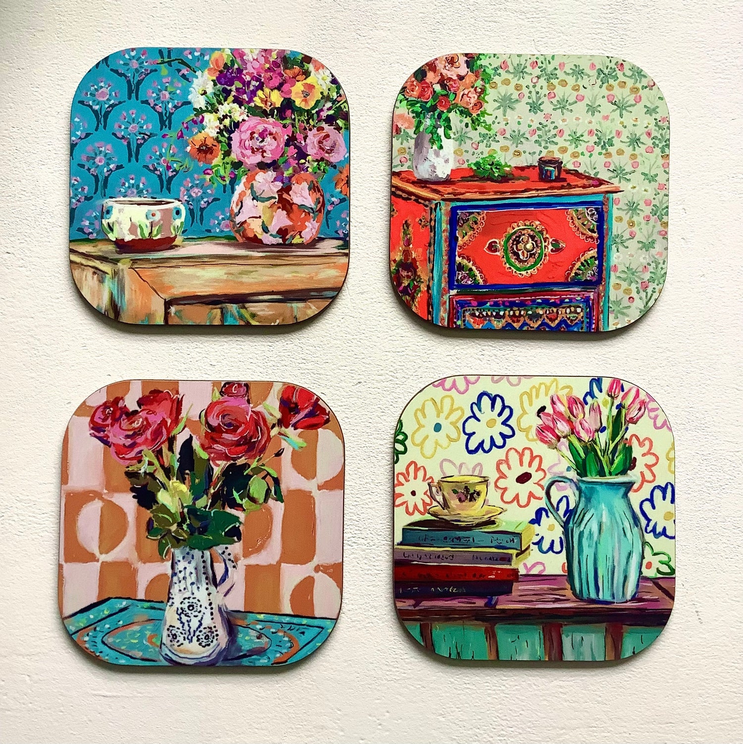 View AllI manipulate the scene to design new and exciting interiors. Collecting furniture, vases, flowers from photographs and online to invent my own narrative. I then paint with oils on an ipad to create the colourful artwork.