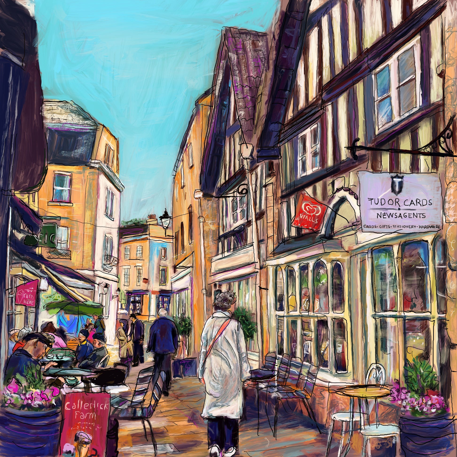 A sunny October morning browsing the shops with friends in Bradford on Avon, enjoying a stroll through the Shambles with all its ancient buildings and a lovely vibrant energy with the cafes spilling onto the path waysdigital art.